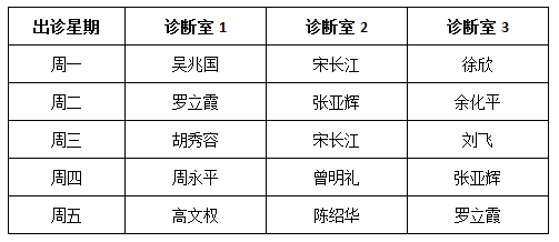 周一至周五专家门诊安排详见下表